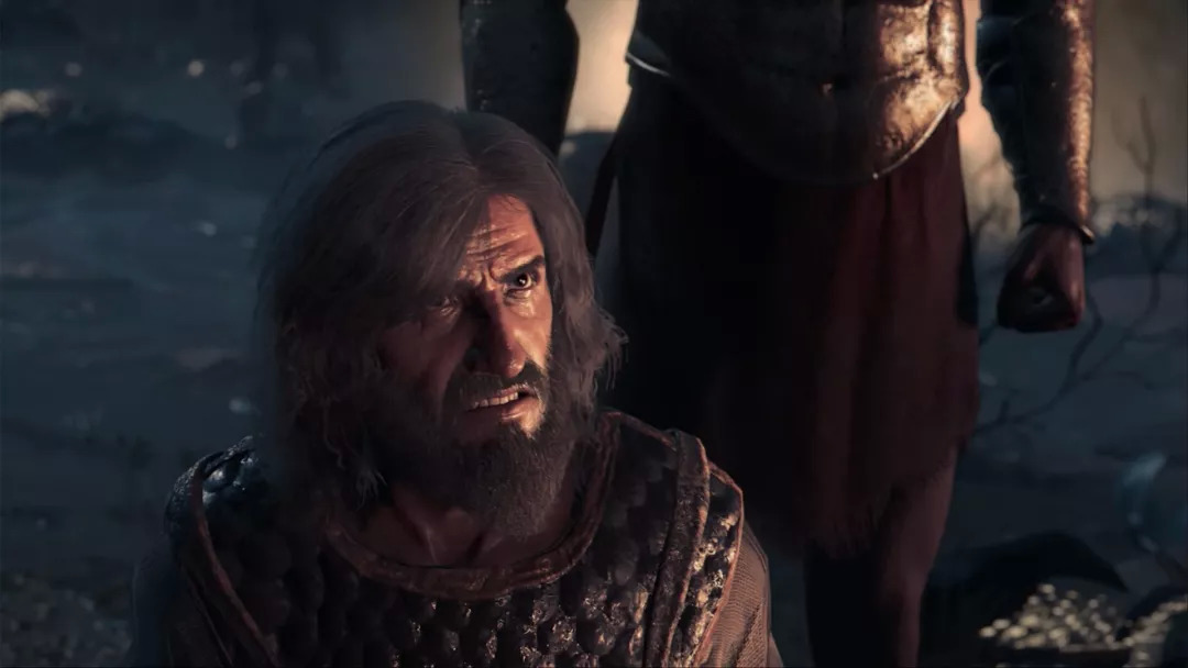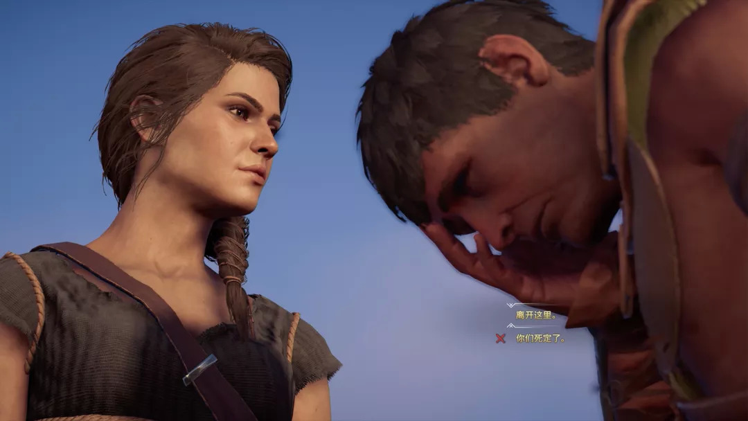 总的来讲,这段序幕有几点值得说。一是剧本上的,《奥德赛》有一个简洁有力的序章,寥寥几笔交代了时空背景、塑造了斯巴达王的人物形象,让玩家明白他们身处何时何地,进入了哪一条历史洪流。这种剧情展开方式比《起源》的开场要流畅许多——《起源》是这么多代“刺客信条”的开场里,我唯一没有玩明白的——巴耶克从何而来,为何坠落到墓穴里和敌人决斗,没有任何交代,编剧没有试图把玩家引入这个世界,只是把一个剧情片段粗暴地扔给你,让你在后续的剧情里狐疑着慢慢拼图,所以我在《起源》里最初的几个小时完全是懵的,这次就好得多。