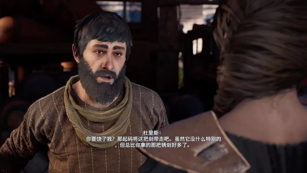 在新手岛上,卡珊德拉为了给自己的养父马可斯擦屁股,周旋于数个NPC之间。简单地举个例子,她本来是去A那里要账的,却发现了新的线索B,可能还要牵扯到债主C,这当中的每个人都有一套说辞,而且跟马可斯的说法有所不同。那么你相信谁说的是真的,到底还要不要这个账了,就需要在一些关键对话上作出选择,而且这些选择《奥德赛》也都给你了。
