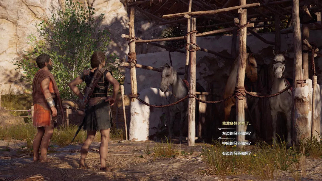 由于游戏RPG化,剧情演出和文字量显然是增加了。出现了一些只有在RPG里才会有的对话类型,比如卡珊德拉在任务结尾要给自己选一匹马作为奖励,她可以要求NPC把每一匹马的情况挨个介绍给她听,然后再做出选择,所以,是的,如果你有耐心,或者你本就是一个热情的RPG爱好者,那么《奥德赛》可能真的对你胃口。