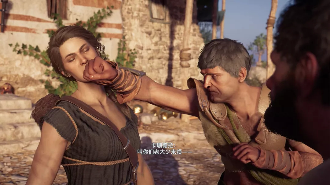 这种基调直到卡珊德拉完成凯法隆尼亚的任务,打败独眼人都完美保持着,甚至她刻意去挑衅独眼人的那一段也十分有趣,你在以前的“刺客信条”里不太会遇到这样的桥段。虽然剧情中间会穿插很多回忆,卡珊德拉要面对自己的身世和残酷的过往(这些回忆部分也是暂时不允许透露的),但卡珊德拉是个乐观的人。我个人是很喜欢这种变化的,如果后面再多一些这样的剧情,可以让整个游戏进程都心情放松,但我也不确定这就是整个游戏的基调。