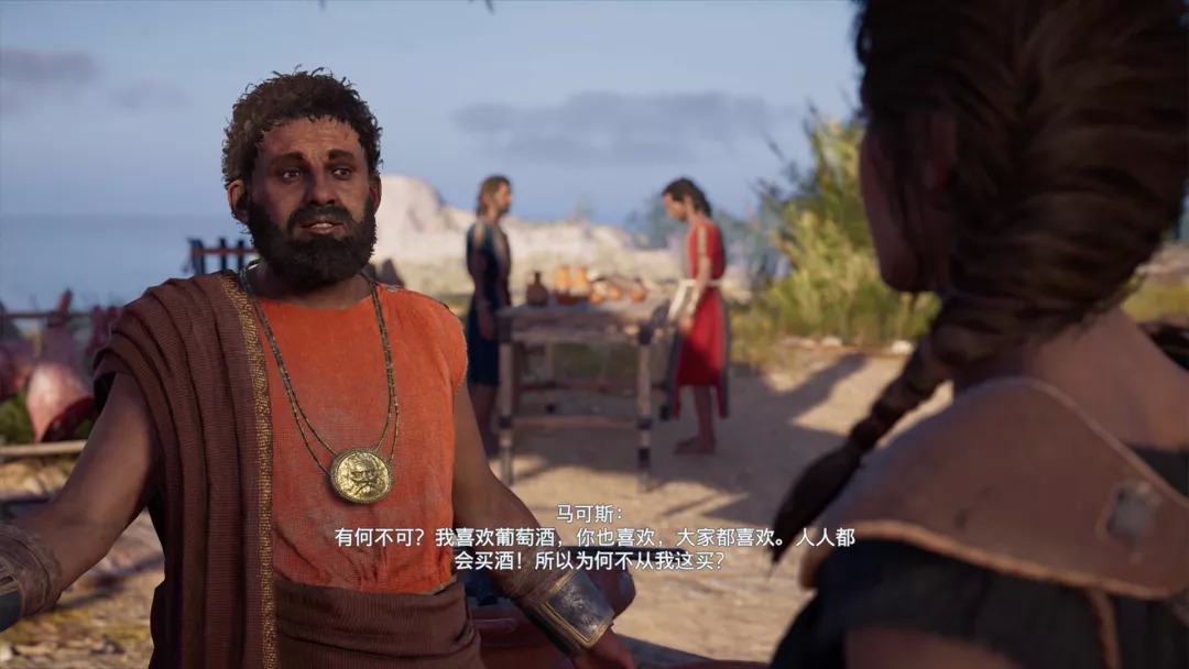 随着剧情主线的展开,你会发现这一代的故事基调有了一些变化,“刺客信条”几乎每一代的故事主调都是“复仇”,复仇的故事有时难免要板着脸,《大革命》的女主角更是复仇成瘾,有点不可理喻,因而2代三部曲的故事就尤其难得。《奥德赛》的故事据说取材于古希腊悲剧,但从体验中看,卡珊德拉这条线还是很轻松愉悦的,从一开始胖揍盗匪,到遇见满嘴跑火车的养父,不断给他收拾各种烂摊子,你还是会觉得《奥德赛》的气质有些不一样。