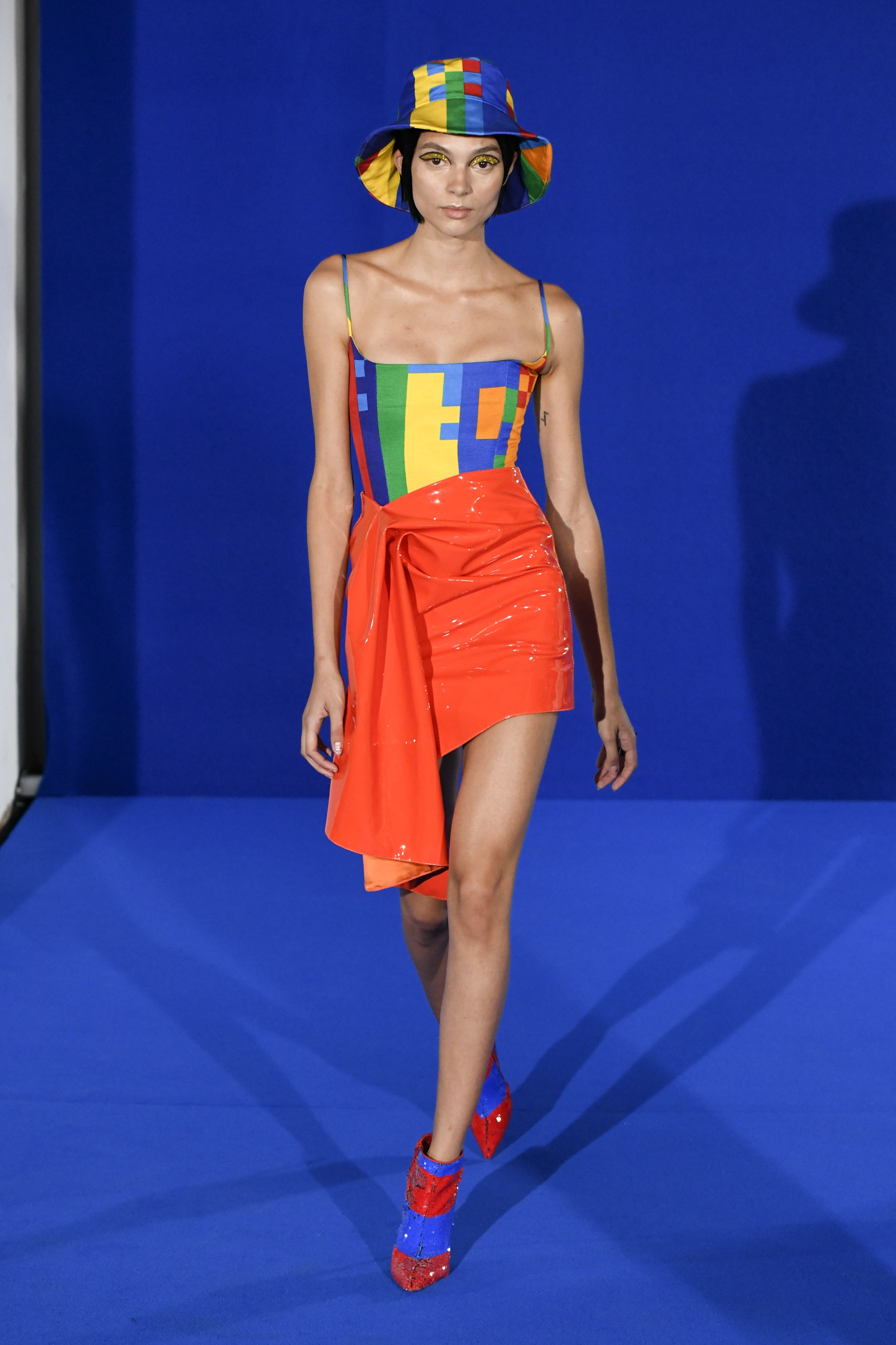 Vivienne Westwood等设计师则继续在服装设计上深入最近两年很火的中性或者无性别风格,通过模糊性别的设计表达“衣服就是衣服,男女二元的概念太没劲了”。所以我们在Vivienne Westwood最新一季看到男装和女装差异并不大的设计,看到了穿高跟鞋的男孩和穿松垮牛仔裤的女孩,他们不在意性别,他们看起来很酷。