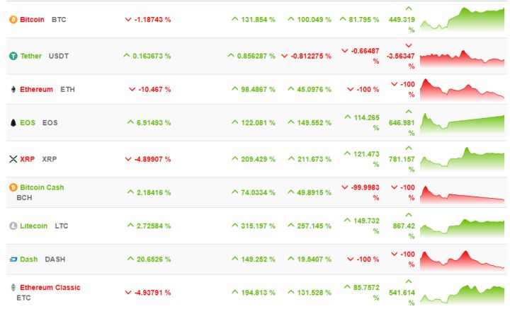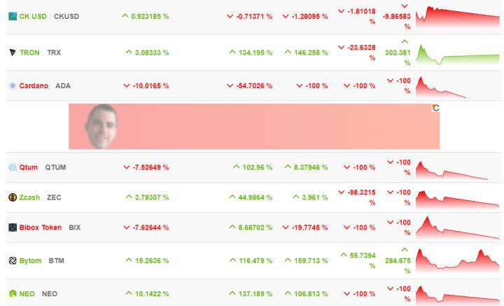 在 Wallet Investor 的暴涨 10 倍币列表里,我们看到了几个令人匪夷所思的项目,比如已经被宣判死刑的 Centra。这是一个被区块律动 BlockBeats 写过的项目,该项目由美国拳王梅威瑟代言,但是因为存在商业欺诈行为,该项目定美国方面定性为诈骗,创始人在机场被警方抓捕。该项目已经基本进入死亡阶段,仅剩少数人进行交易,过去 24 小时的交易量仅 2000 美元。(阅读《美国拳王梅威瑟跨界宣发 ICO 被骗,如何向千万粉丝交代?》)