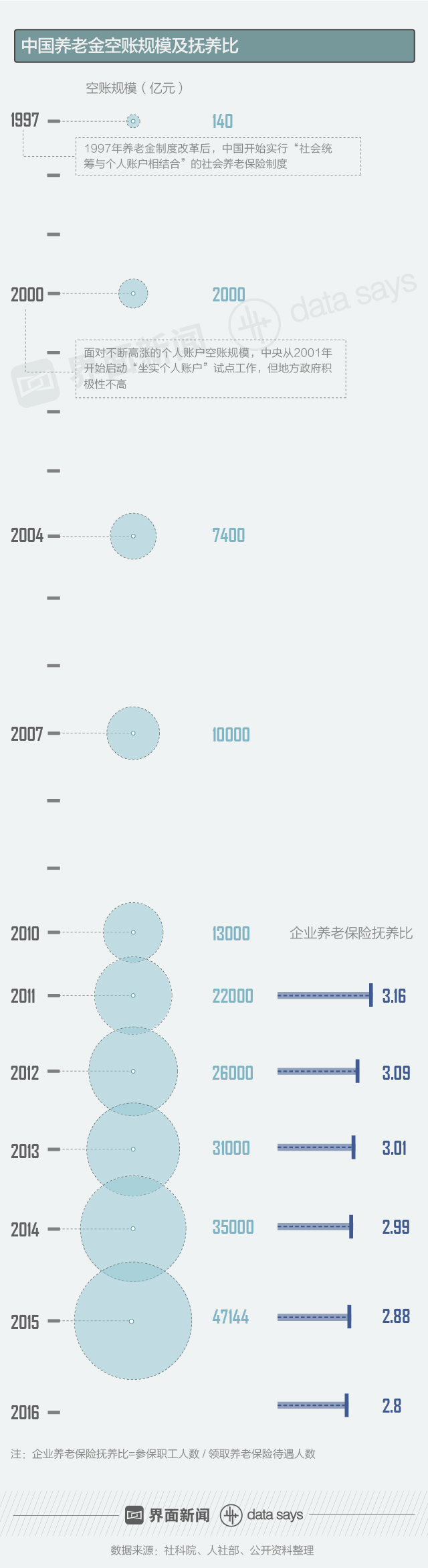 《中国养老金发展报告2016》显示,2015年中国养老金空账规模已经达到4.7万亿。