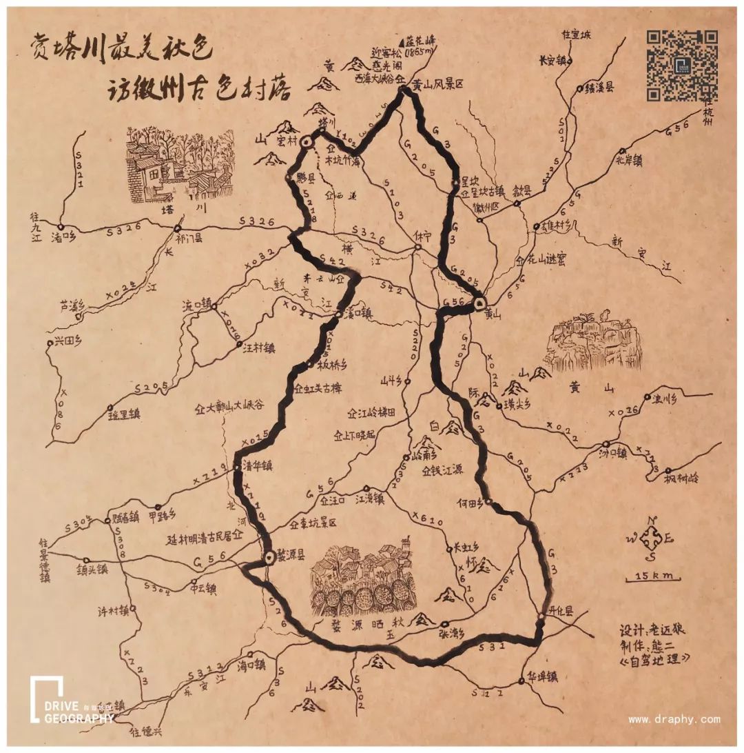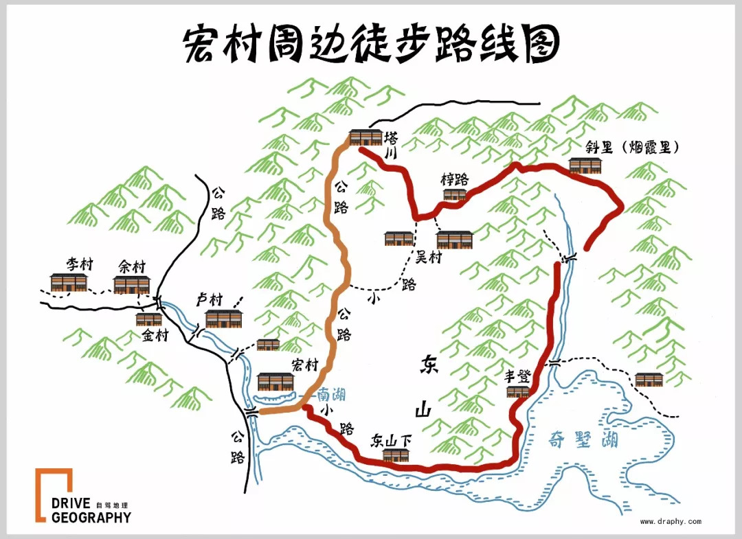 宏村到塔川徒步示意图。制作@《自驾地理》