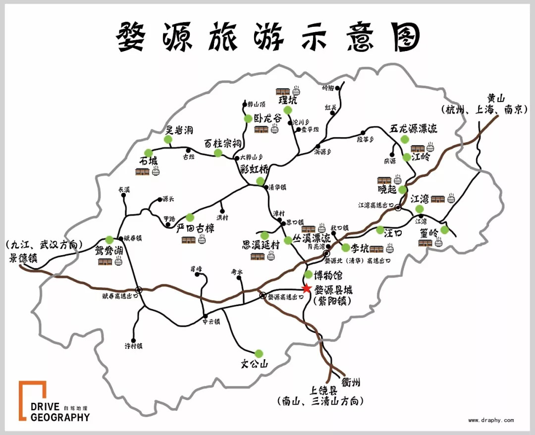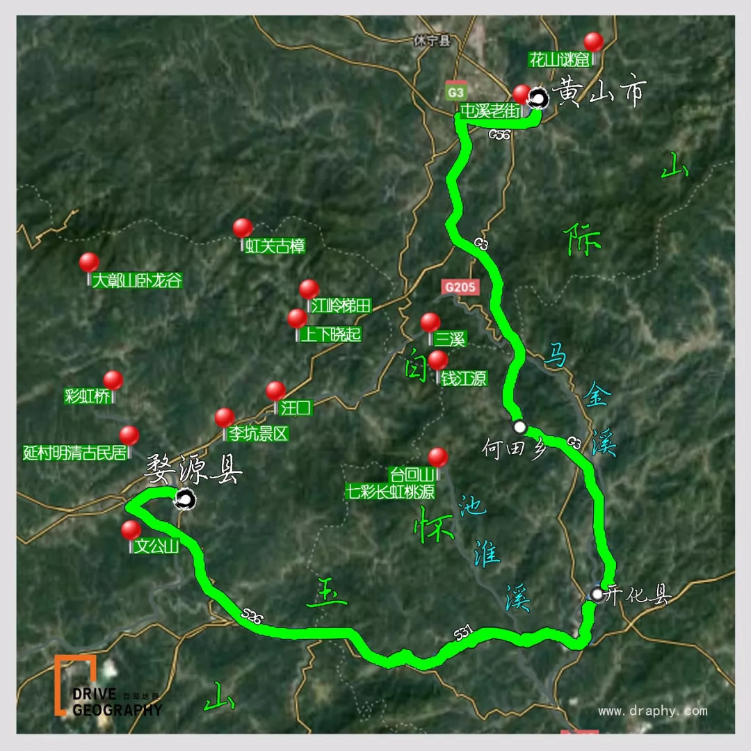婺源县 90km 开化县 35km 何田乡 80km 黄山市