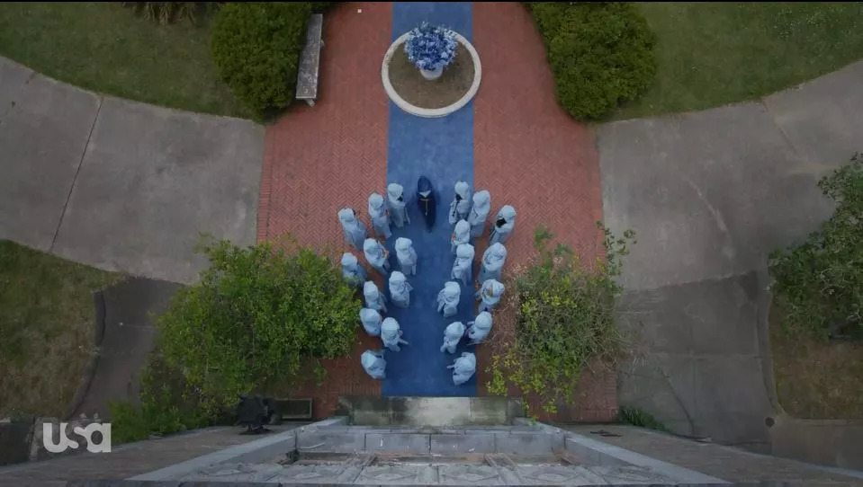 警察执行杀戮的指令,在美国国歌的背景音乐中,这次围剿颇具仪式感