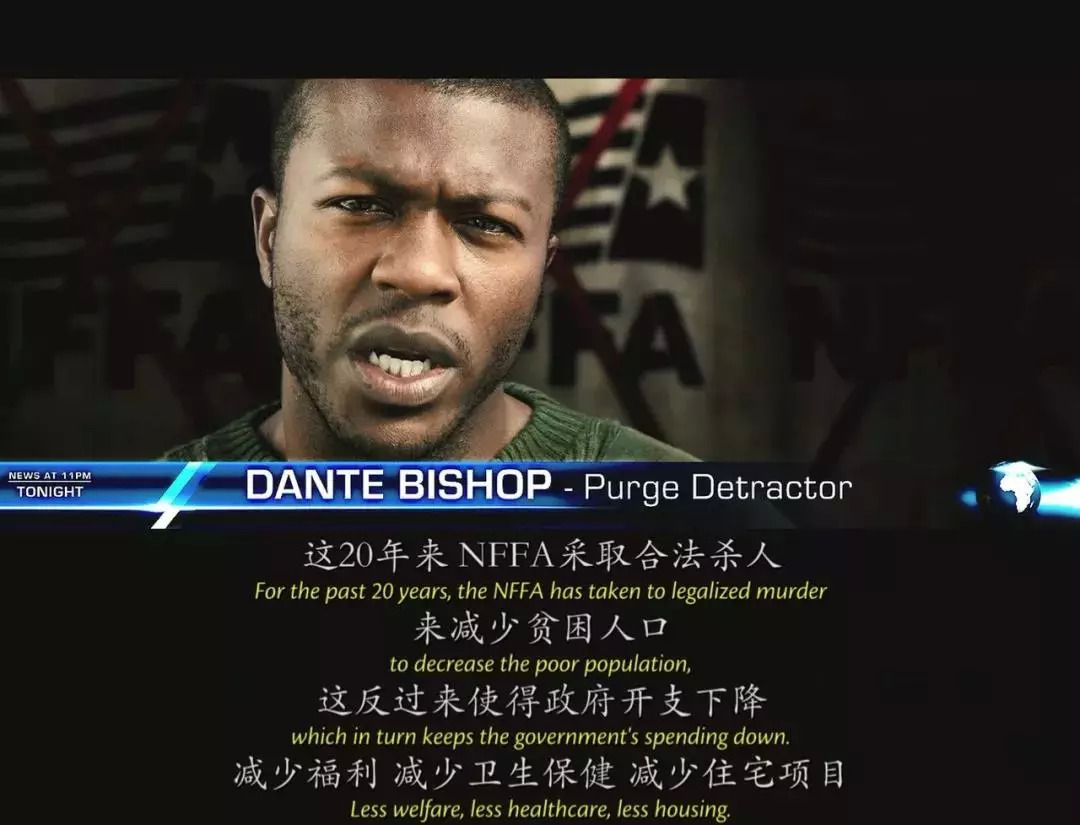 2017年,人口膨胀导致美国失业率高居不下、犯罪率攀升,执政党新开国元勋(NFFA)在全国推行一项名为“清除”(The Purge)的政策——