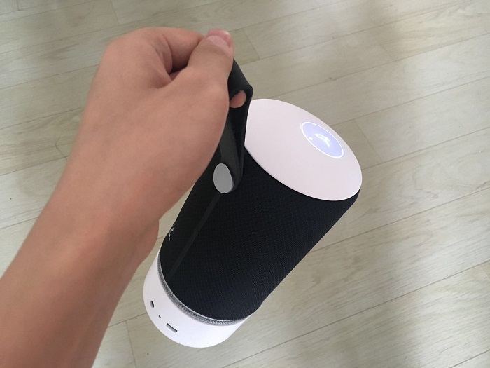 为了让音响能够安置在家中任意角落,Zipp 2智能家用音响内置了电池和皮质拎手,用户可以轻松得拎着音响随意摆放。