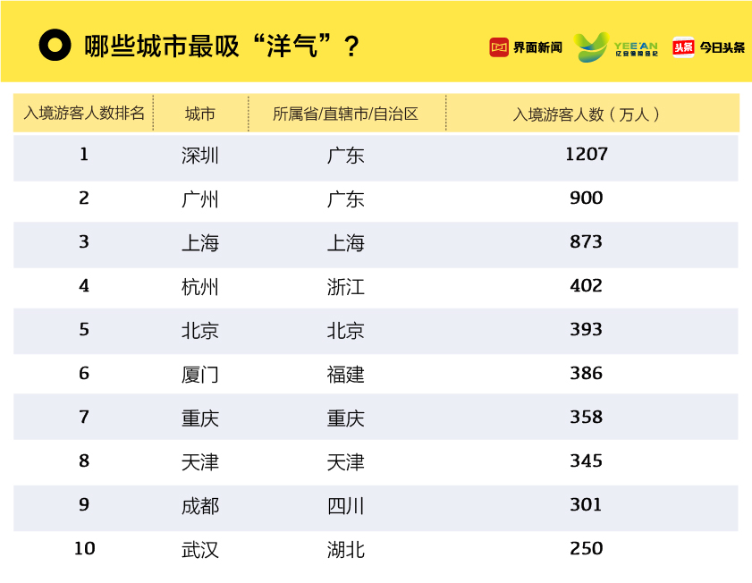 而像广州厦门这样的东南沿海城市,一直都在改革开放的前沿,粤商闽商遍布海外,故而在入境游客排行榜中也能够位列前排。特别是广州,本身就是历史上为数不多的繁华上千年不曾衰落的城市,清朝以来,广州的十三行更是唯一的对外通商的口岸。作为华南地区的交通枢纽,门户城市,广州与东南亚和非洲的联系紧密,上榜也是自然。其他上榜的一二线城市也基本都是所在区域的交通和政治文化中心。