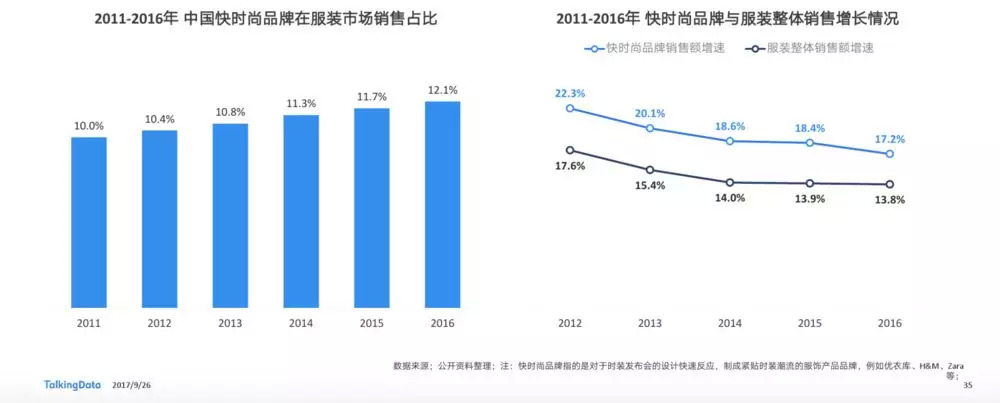 近几年,以优衣库为代表的快时尚品牌增速则高于中国服装市场整体增速5个百分点左右。优衣库新财报显示,其大中华区(内地、香港、台湾)营收和利润增长超过其他海外市场的总和,也超过了日本本地市场;