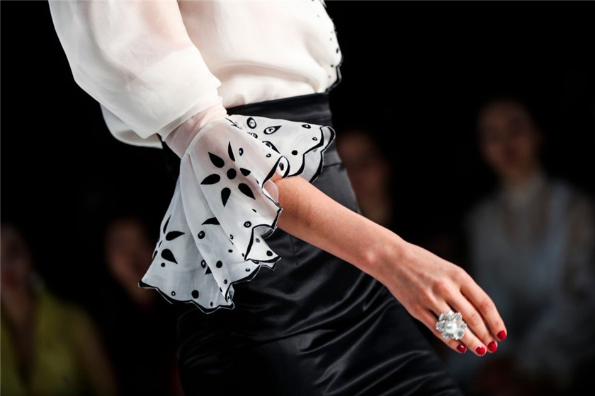 大秀的开场则用LED屏以短片形式展现了丹·Dan在五年内举办的其他大秀以及参与的主要活动。随后,一名模仿奥黛丽赫本的经典小黑裙形象的舞者伴随着复古的爵士音乐出现在了T台中央,将观众的思绪引向了1950年的巴黎。