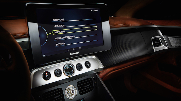 最令菲斯克兴奋的部分,还是Thunderbolt的内饰,尤其包括由松下(Panasonic)制造的信息娱乐曲面屏幕。11.6英寸、高度可调节的“曲面控制屏幕”(curve control screen),设计的初衷在于减少眩光(glare),并提供卓越的问题解决方案。相较智能手机,汽车提供的信娱系统始终不够直观。菲斯克认为,这就是为什么200万美金的豪车与500美金的智能设备比起来总显得out。在他看来,汽车业由燃油向混动与电动的转换已经完结(这种转换假以时日就能完成),接下来的新革命则在于“重新定义内饰体验”。