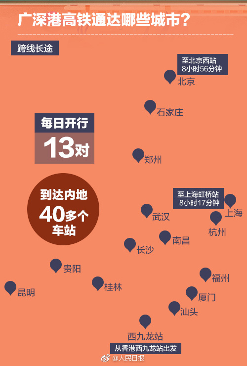 列车从香港可直达内地44个站点,9小时左右到北京