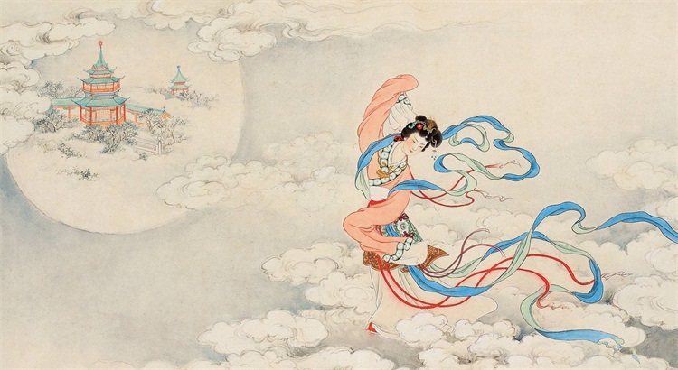 嫦娥的负面形象自六朝开始转变,她不用在月亮上捣药,而被安置于天宫中。到了唐代,诗人们还会在笔下寄托对嫦娥遭遇的同情。”李白就曾在《把酒问月》中写道:“白兔捣药秋复春,姐娥孤栖与谁邻”,同情她以前在月亮上的孤单生活。后来,人们结合各种神话素材,对“嫦娥奔月”这一神话进行更多再创造,其中广为流传的一个版本是:嫦娥为了保护后羿的不死药不被蓬蒙抢去,自己不得已服下它才升天成仙。在这个版本的故事里,嫦娥不再是因犯偷盗之罪而被惩罚的恶妇,而是一位美丽善良,不惧恶势力的月亮女神。