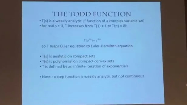 在演讲中,他抛出了自己定义的Todd函数,通过常数结构的解析,并利用反证法给出了证明思路,值得赞叹的是,尽管演讲时间只有四十五分钟,他也没有忘记向给过自己启发的数学家们和物理学家们致敬。