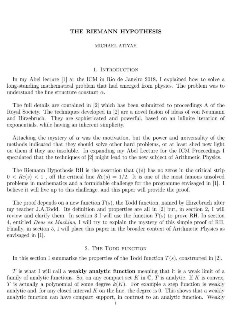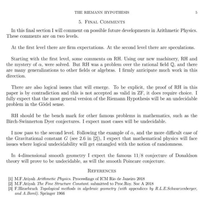 今天上午,据称是他的证明论文的预印版被流出,短短五页纸的长度与黎曼实现了隔空的遥相呼应,时隔159年,时代不同,但不变的是依然简洁。