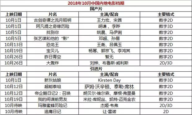 国庆档年度票房大战即将开启,由于《影》、《李茶的姑妈》、《无双》等国产电影的摩拳擦掌以及重磅外片的缺席,这导致整个十月影市颇有“头重脚轻”的意味。