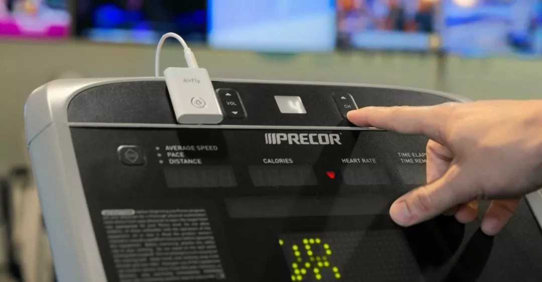 或者你在跑步机上挥汗如雨,因为身体虚……额,不,是因为久不运动导致播报的成绩不好看,又不希望那些庸俗的人笑话你,那你就可以用Airfly连上跑步机使用AirPods收听了。