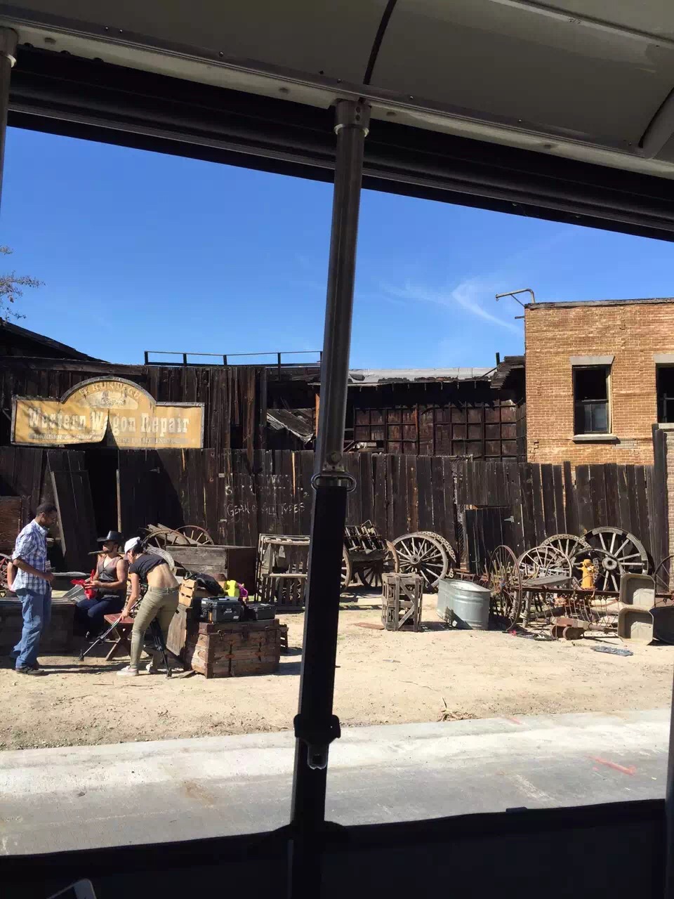 电动巴士首先穿越一段好莱坞最大的外景片场。这片占地1.6公顷,展示13个街区的布景,是根据斯蒂芬·斯皮尔伯格的创意而建造,每天都会有多部影视剧在这里进行拍摄。在纽约街外景片场,不仅有曼哈顿街道,还包括了中央公园等诸多景观。伦敦广场和巴黎广场也是取景最多的外景地。诺曼·贝茨的惊魂旅店,绝望主妇们粉饰太平的紫藤道富人区都能在沿途找到。巴士途径由斯皮尔伯格执导的《世界大战》中的波音747残骸,这部由汤姆·克鲁斯主演,在银幕上看起来毁天灭地恢宏震撼的灾难巨片,主场景不过就是足球场大小的一块方地。如此一趟下来,如同穿越了时光机器,将大地震、飞机失事,木桥坍塌、洪水、爆炸、大白鲨追尾等等险象环生的意外经历个遍。还亲历了高达十米的霸王恐龙和号称世界第八大奇迹的金刚之间在头顶上展开的殊死搏斗,摩西过红海的石破天惊、速度与激情中的街头赛车、从天而降的歌舞片欢歌热舞桥段。特别是《金刚》和《速度与激情》两个系列的特效摄影棚内,借助3D投影,背景音效,水雾灯光,再加上车身震动,让人沉浸于穿梭时空的幻觉之中。