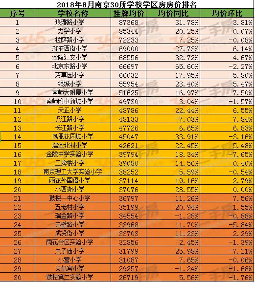 据365南京二手房统计数据显示:在8月南京30所学校学区房房价排名中,南京前三排名小学最新挂牌情况如下: