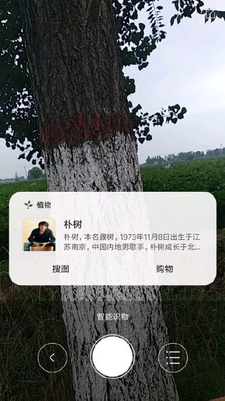 随手拍了一棵树,结果小米的智能识物直接给识别成朴树,说它搞错了吧也不对,因为左边还清楚的显示了类别是“植物”。所以,朴树至今没有回应,可能是本人还在迷糊中。