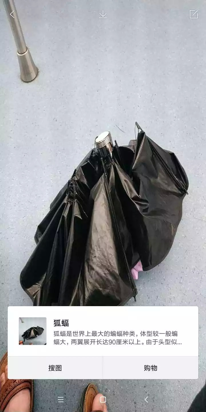除了这些,小米智能识物被网友活捉的智障瞬间还有不少,比如把一把伞强行认做蝙蝠: