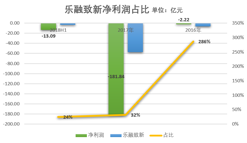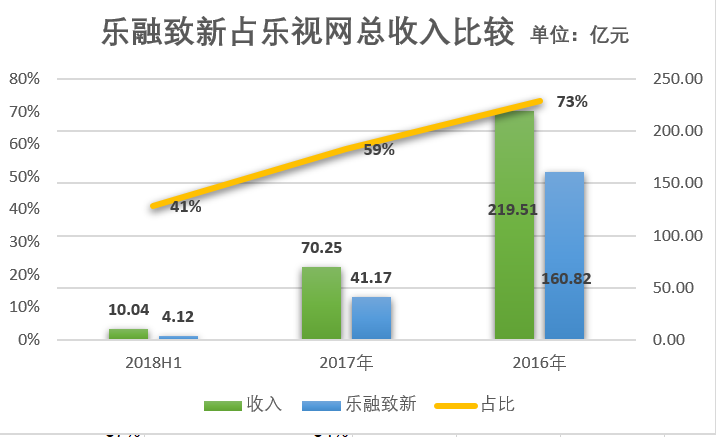 根据公告,2017年和2018年上半年乐融致新营收分别为41.16亿元、4.12亿元;占乐视网总营收分别为59%和41%;净利润分别占上市公司净利润的32%以及24%。资产方面,截至半年报乐融致新总资产为67.25亿元,占上市公司总资产的40%。