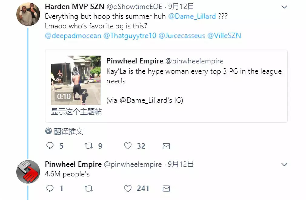 Twitter一位不怕事的球迷转发了一个视频并评论:利拉德这休赛期忙这忙那,唯独不去训练!滑天下之大稽!粉丝们还好意思认领爱豆吗?