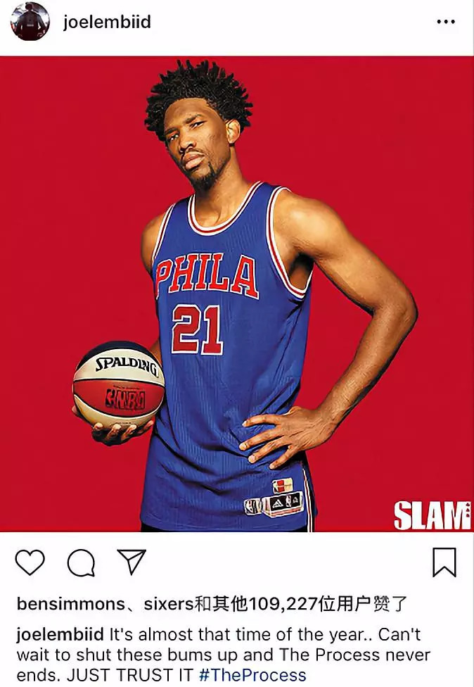 还有这种不知道究竟是为了发自己帅照还是为了怼喷子的选手……上个赛季开始前,恩比德曾在ins晒出自己为SLAM拍摄的帅照并配文:又一个新赛季快来啦!等不及让黑子们闭嘴了,让我们一起相信过程!