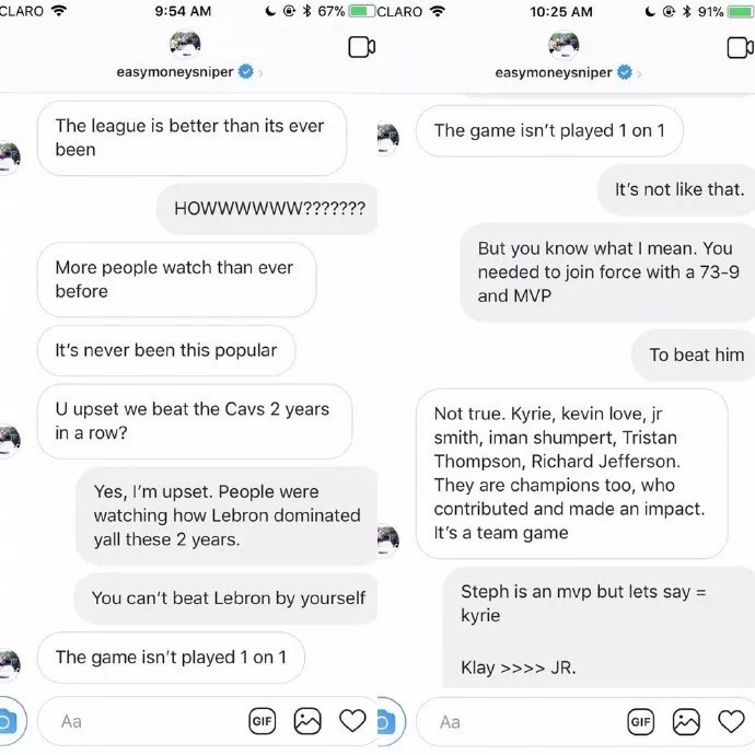 前段时间,有一位网友给杜兰特发了这样的私信:KD,你毁了NBA!抱团得到的3个戒指根本毫无意义,你晚上一定睡不好吧?于是,一场认真的辩论战打响了……