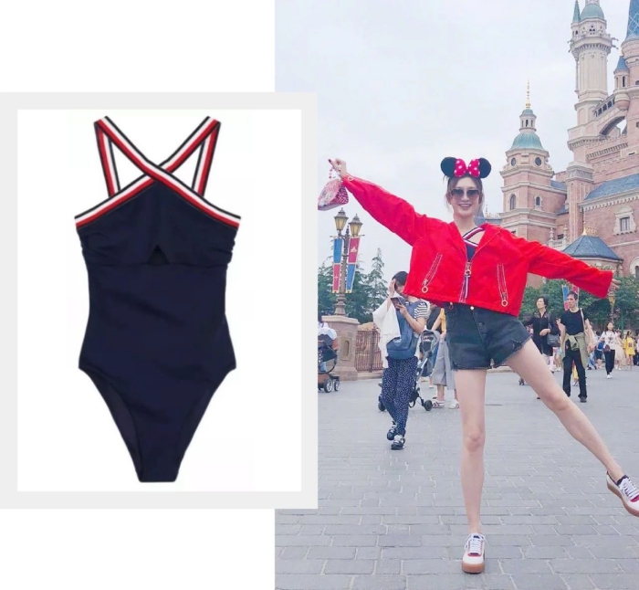 江疏影甚至穿着连体泳衣去迪士尼玩耍。