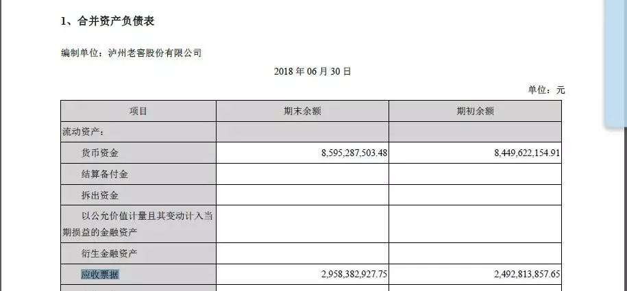 截止2018年上半年末,泸州老窖应收票据余额约为29.58亿元,和期初余额24.93亿元相比,增幅在18%以上。