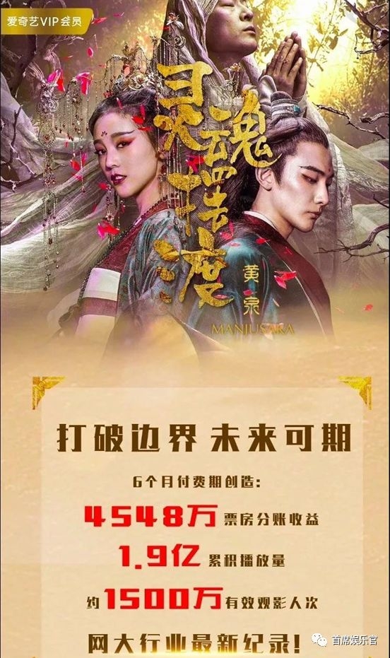 截止8月底,上半年的网大作品中,爱奇艺的《灵魂摆渡·黄泉》票房分账超过了4550万,优酷的《齐天大圣·万妖之城》分账也超过了4000万。