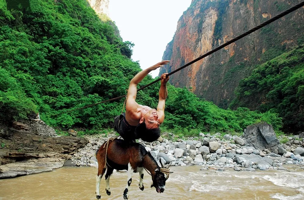 怒江峡谷壁陡崖悬,壑深万丈,滔滔江水如野马奔腾于峡谷之中。传说中,一对分别居住于怒江两岸的僳僳族恋人,在无法相会的苦恼之中,受到彩虹的启发,拉起了怒江上的第一条溜索。