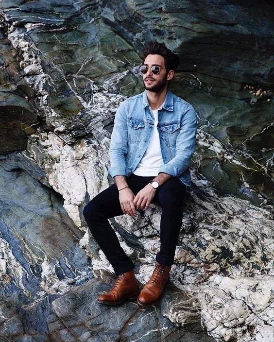 男士通勤除了穿西装之外,当然也可以穿牛仔外套,内搭一件衬衫会让你看起来轻松幽默又不呆板。