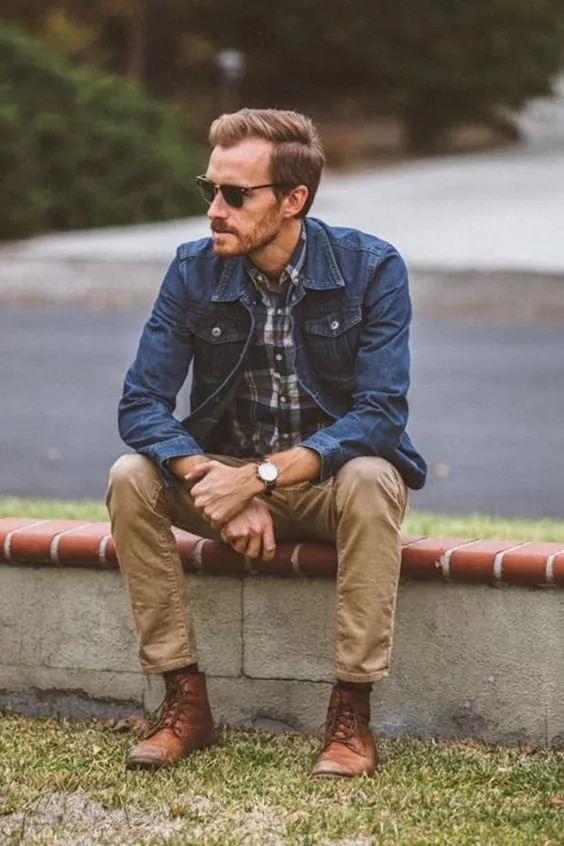牛仔外套搭配格子衬衫,能够很好的中和掉格子衬衫的“技术男”味道。