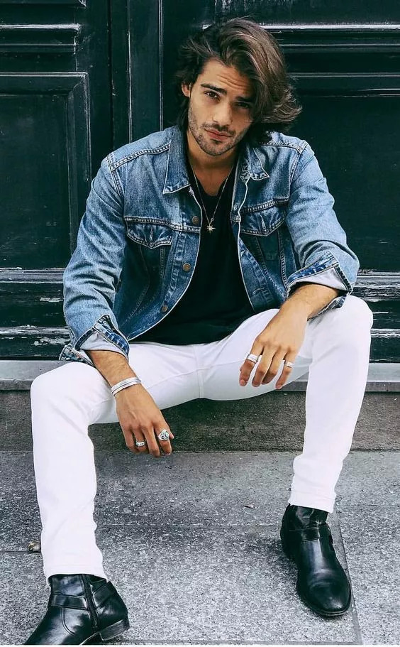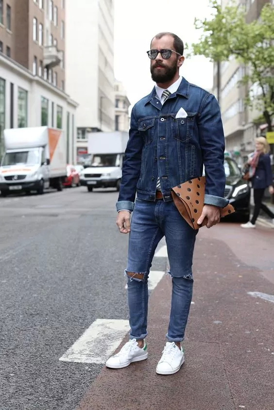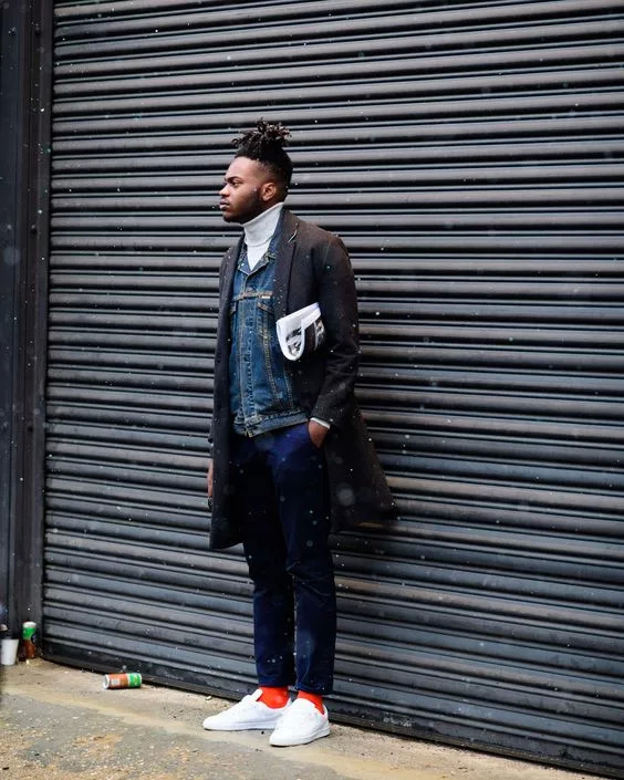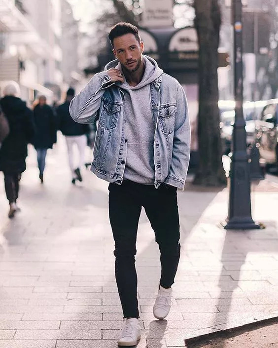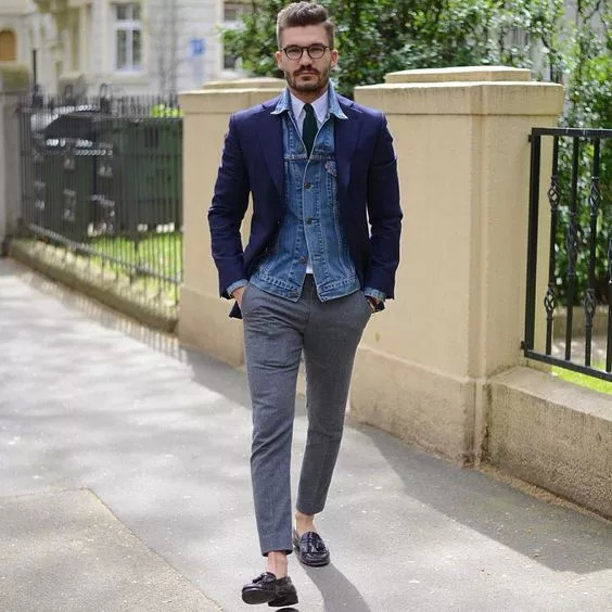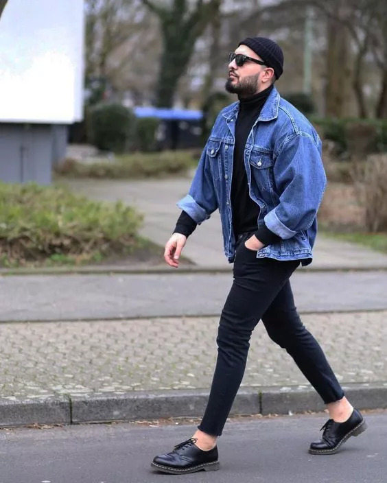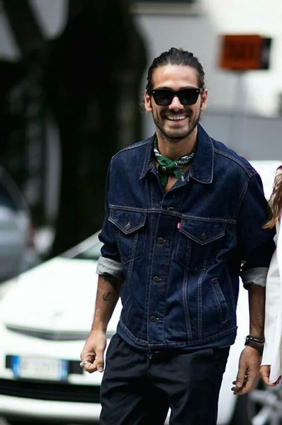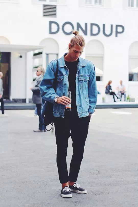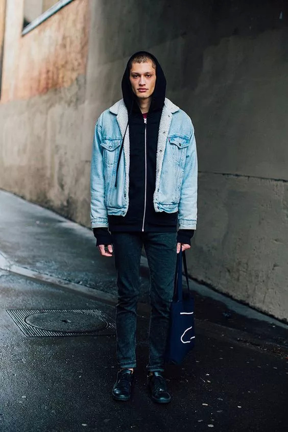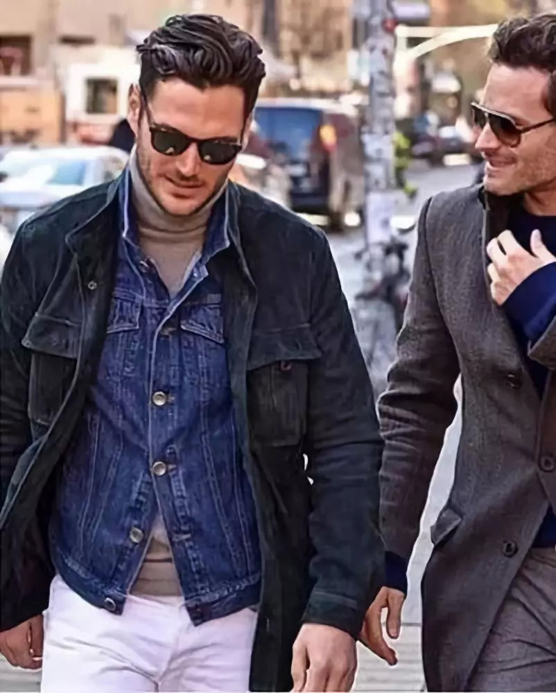 直接穿一件牛仔外套,或者在牛仔外套里搭配一件高领衫,又或者像下图一样敞开穿,从正式到街头再到休闲,都会给人不一样的感觉。