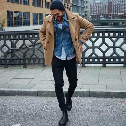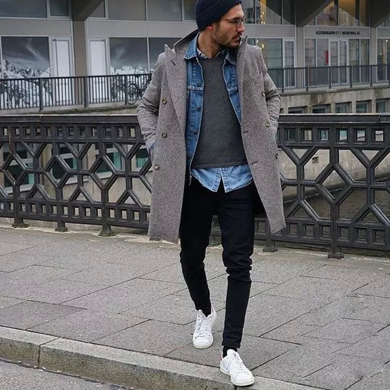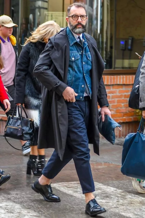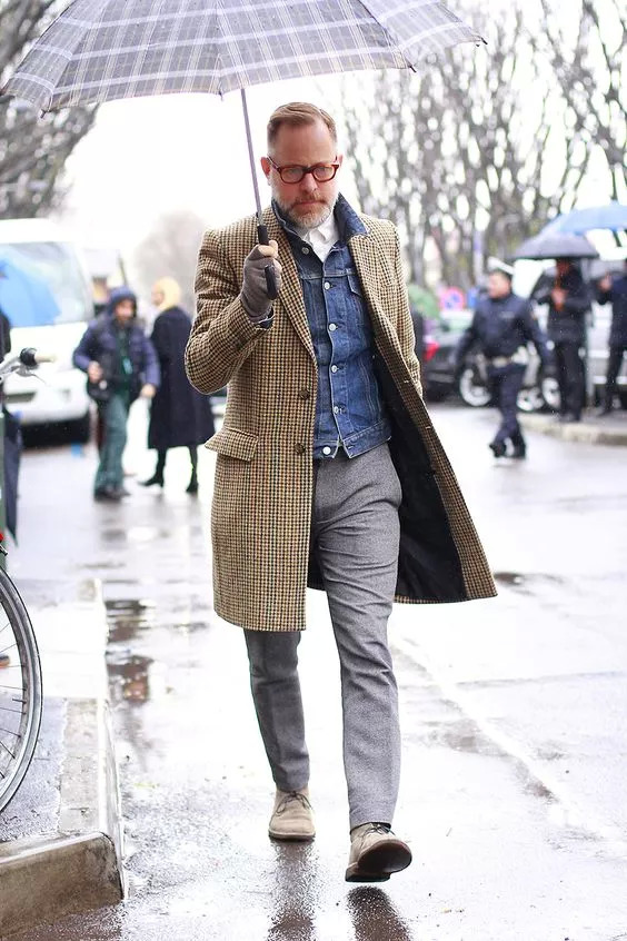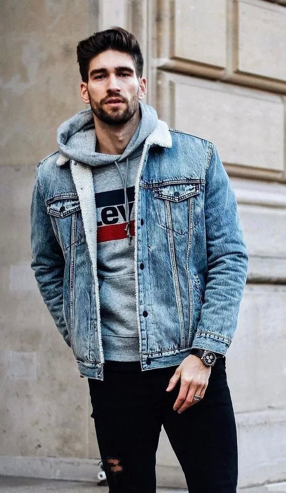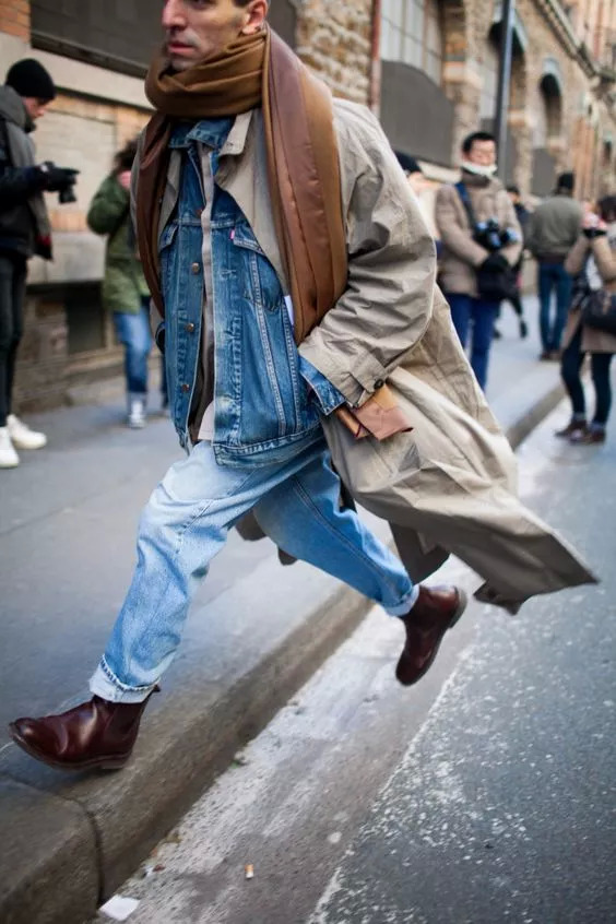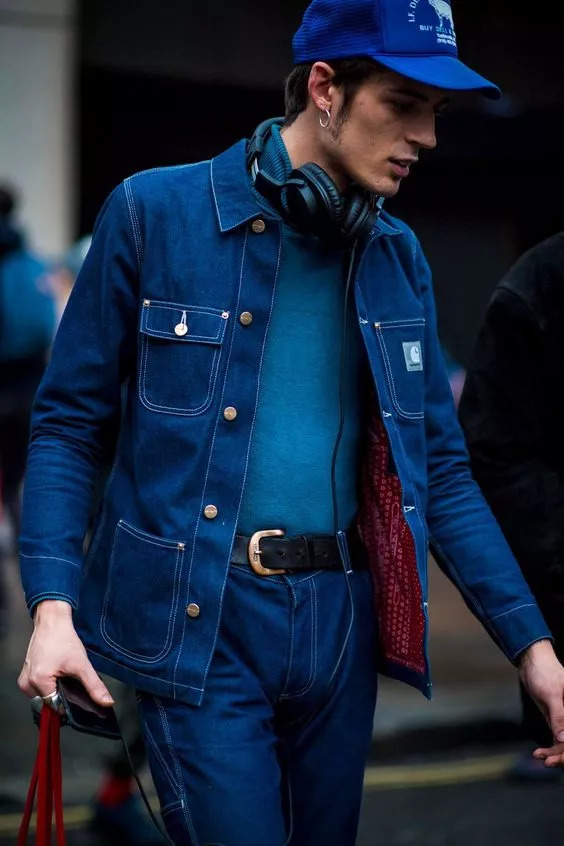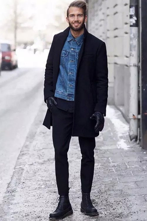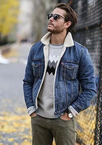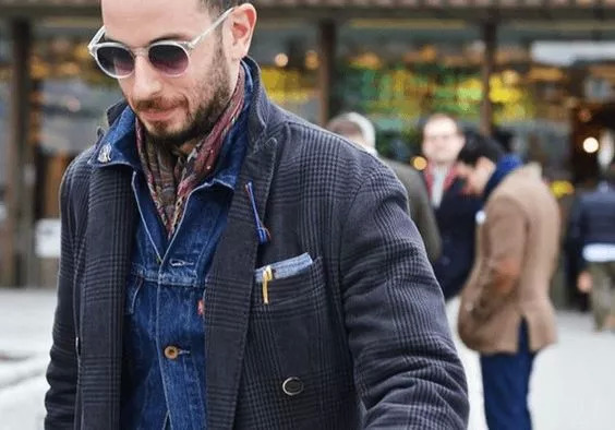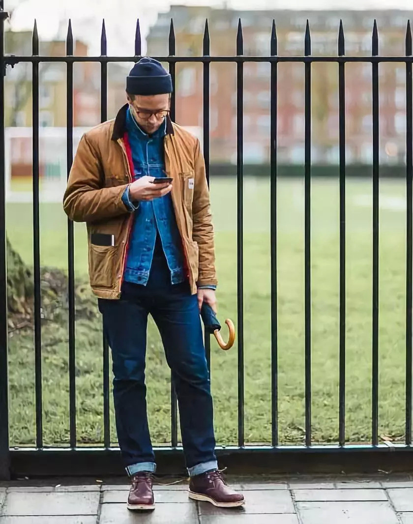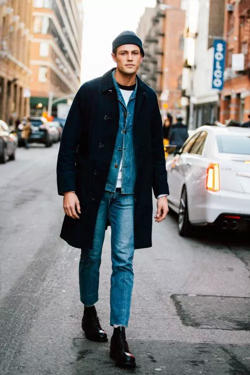 冬季时,牛仔外套就可以拿来做内搭了。可以把它搭配在休闲感十足的夹克中,也可以把它搭配在剪裁相对比较硬挺正式的大衣中,看起来保暖又有型。