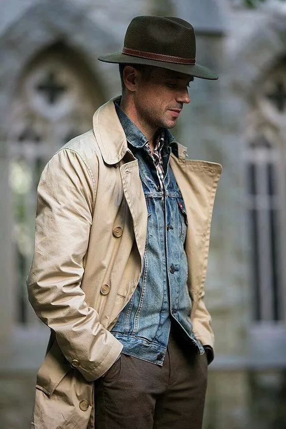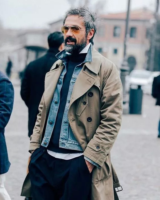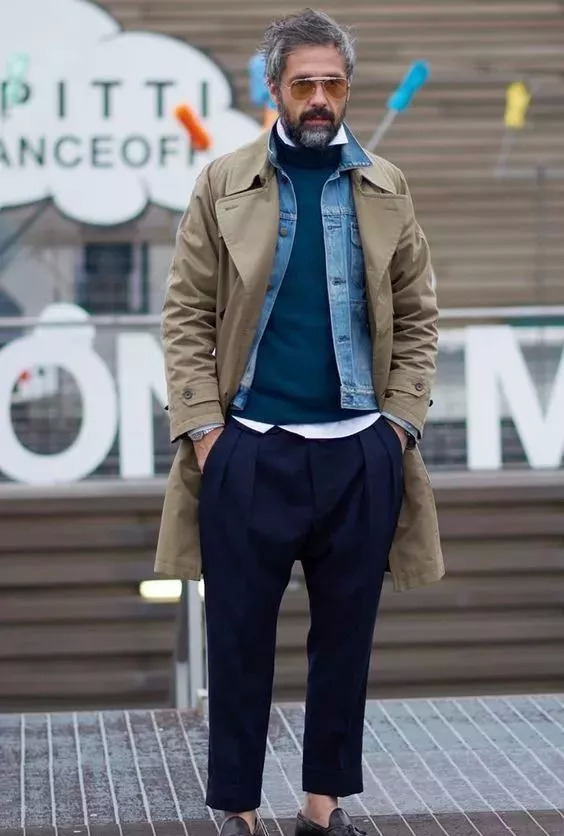 基本款的风衣色彩跟牛仔外套都很好搭。
