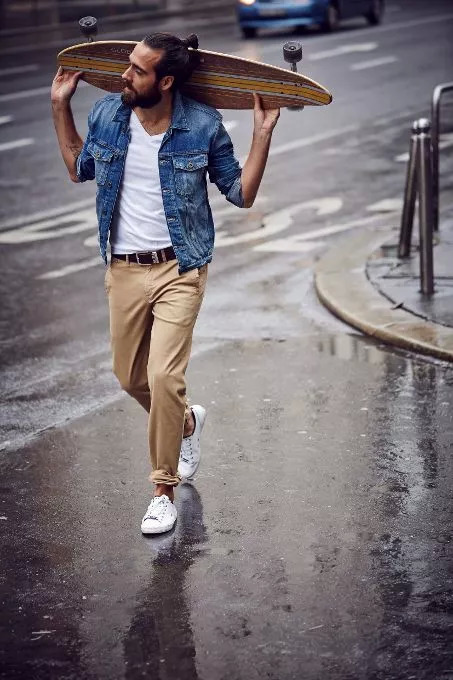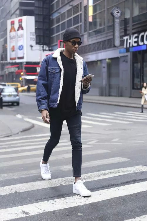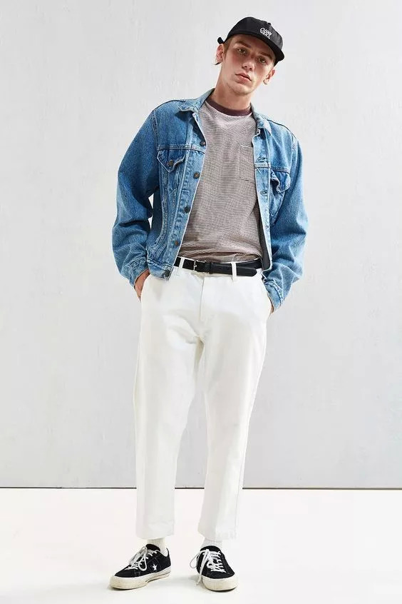 穿牛仔外套在选择裤子时,款式方面它还是非常百搭的,工装裤、紧身裤、休闲裤都可以。主要是颜色的选择,与牛仔蓝色能够完美搭配的色彩不是很多。