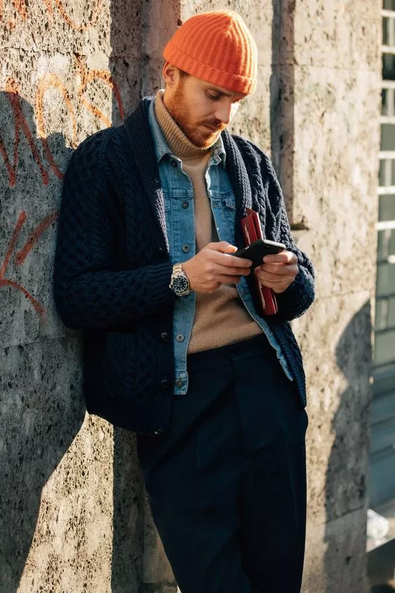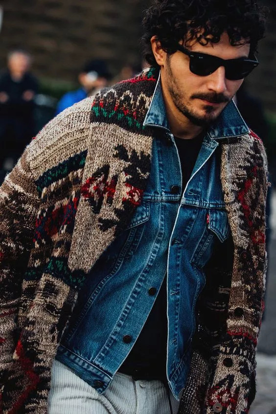 各式各样的夹克外套,还有厚实的针织外套,都能很好的跟牛仔外套搭配起来。