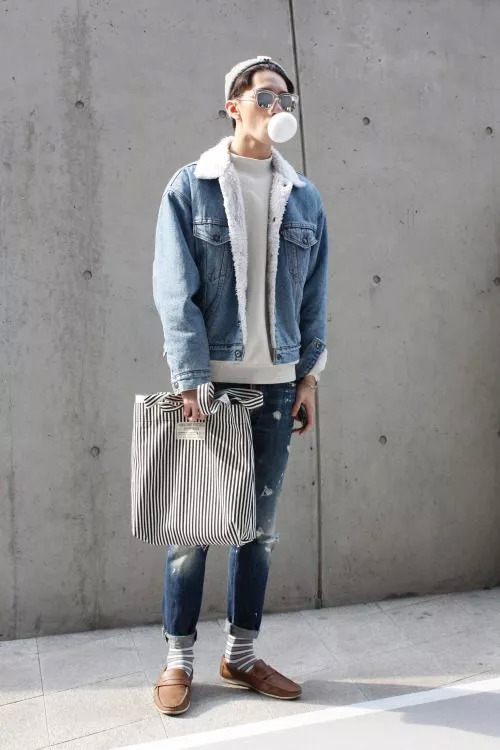 卡其色与灰色依然是牛仔外套最合适的色彩搭配。