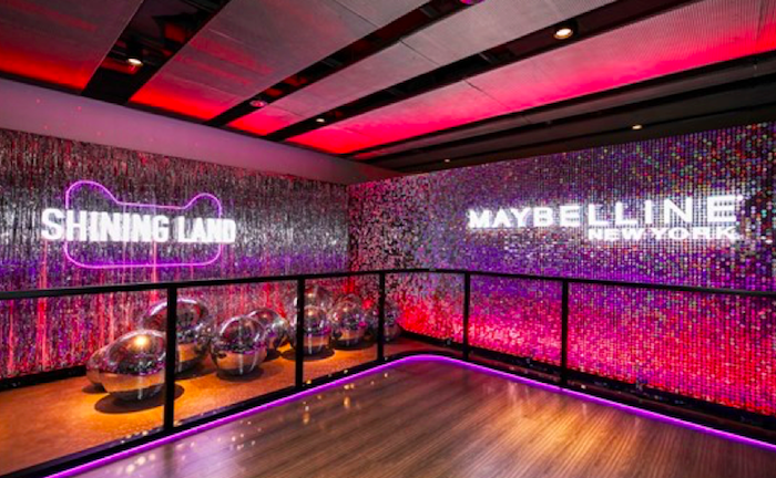 在线下场景中,“快闪店”、“游乐园”等形式的体验营销是美妆品牌粉丝运营的流行方式。为了吸引年轻女性消费者,品牌们热衷于将线下互动空间设计成女性粉丝喜爱的风格,并融入更多与男性明星联结的营销元素。例如,美宝莲星钻小灯管的新品发布会现场被设计成了“Shining Land 星钻游乐园”,其中陈伟霆的合影间、试妆间以及复古霓虹溜冰场等都符合女性受众“与偶像同框”、“自拍出片”的需求;春夏品牌发布时,也选择在上海网红地标“上生·新所”举办了“春夏芽果保湿工厂”快闪活动,为吸引粉丝专设了“张艺兴粉丝休息室”以及各类应援物。