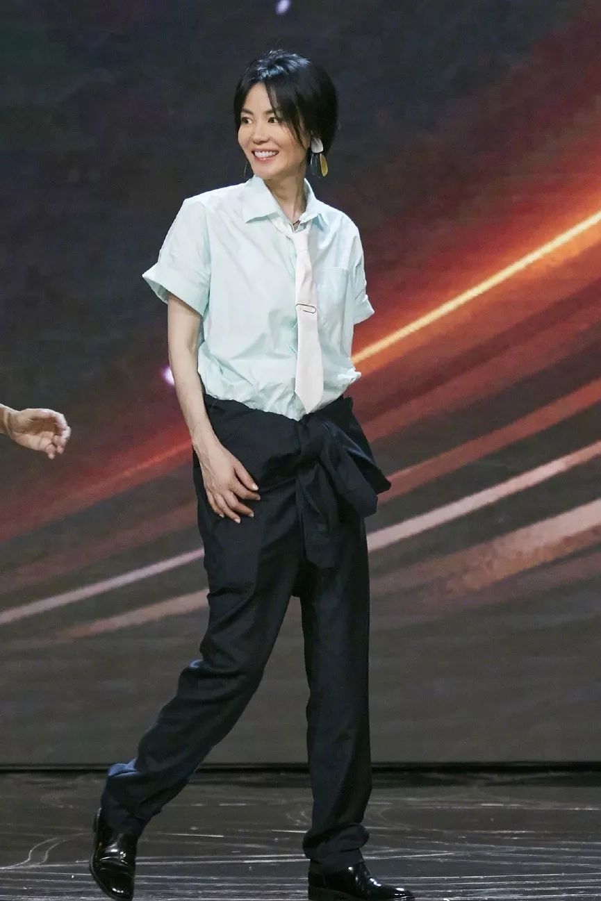 或者你也可以像王菲一样,穿衬衣打个领带,将别针别在领带上,随意又帅气。