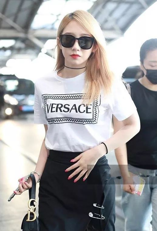 不是只有衣服裤子可以别别针哦,穿裙子别别针也很好看。孟美岐一件白T搭配一条黑色半身裙,但别上别针时尚感瞬间就up了几个度!