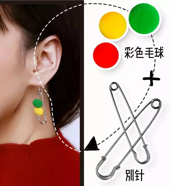 其实自制也超简单,一个别针、一个耳钩、配上几个可爱的小毛球,一对专属于你的别针耳环就诞生啦!