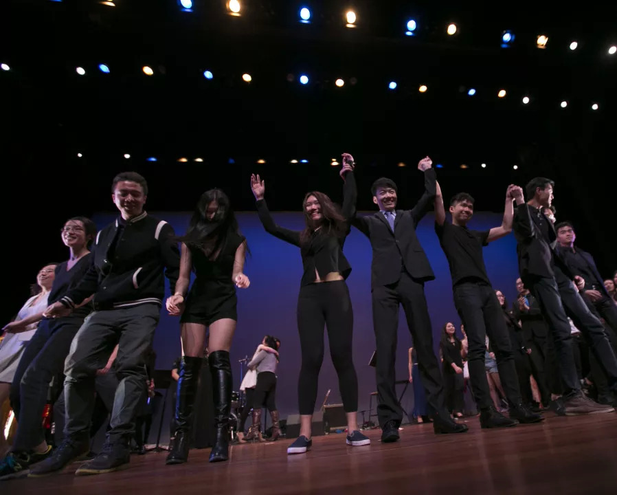 Jack在美国纽约大学期间,以学生会主席身份组织纽约大学春晚(右四)