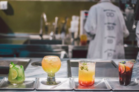 二楼的“茶极客实验室”集中体现了“茶+酒”的创新。这里专门调制以春、夏、秋、冬四个季节命名的含酒精茶饮,价格在25元至48元不等,分别是白朗姆酒与茉莉云毫结合的“春不夜”、梅酒与四季春高山茶结合的“夏会醉”、龙舌兰与金兰茶结合的“秋晚归”以及五粮液与早春结合的“冬未眠”,其中加入的茉莉花茶、凉皮、藤椒、五粮液均为成都人熟悉的食材。这四款限定产品只在成都这家黑金实验室店售卖,以体现产品的地域特色。