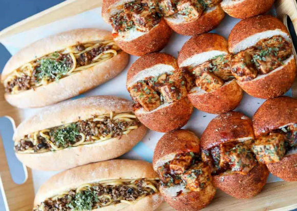 同在二层、现场制作软欧包的“热麦实验室”的里,会做出麻婆豆腐、担担面等四川特色口味新品欧包,然后放到一层的欧包售卖区出售。